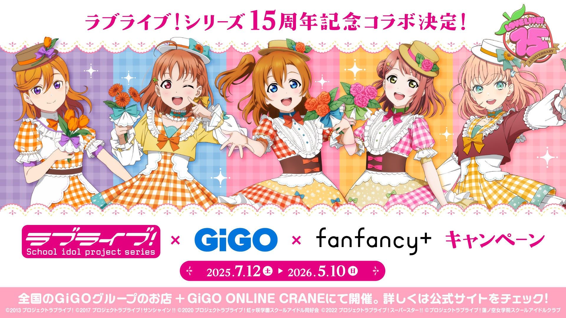株式会社GENDA GiGO Entertainment(本社:東京都港区 代表取締役社長:二宮 一浩 以下「当社」)は GiGOグループのお店におきまして、「ラブライブ!シリーズ」15周年を記念してコラボキャンペーンを2025年7月12日(土)より開催いたします。