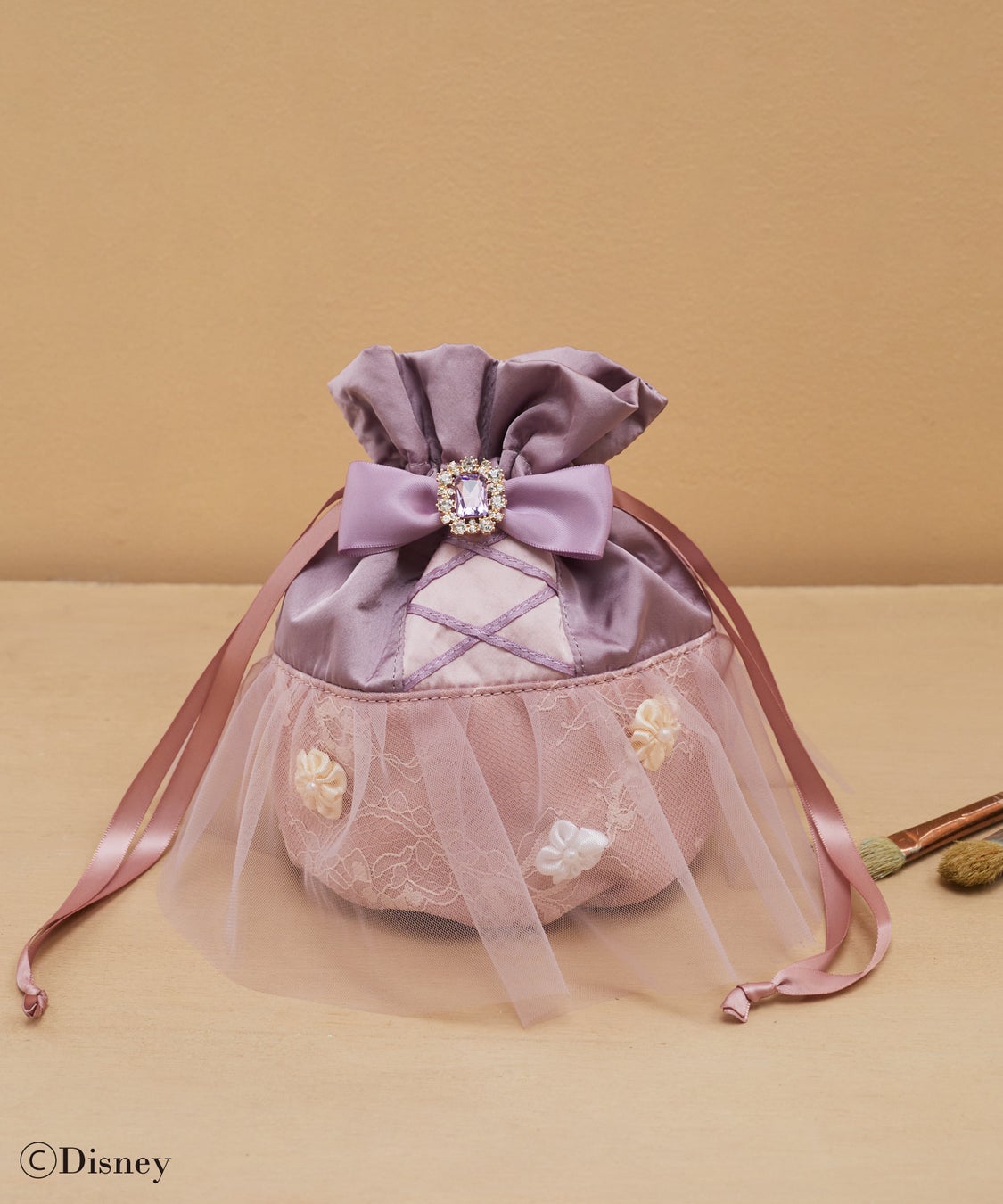 プリンセスのドレスをイメージした巾着ポーチは、レースにチュールを重ねてスカートのようにふんわりとさせ、華やかさを演出。パールやレースアップなど、それぞれ異なる装飾とデザインで各プリンセスの特徴を表した存在感のある特別なアイテムに。