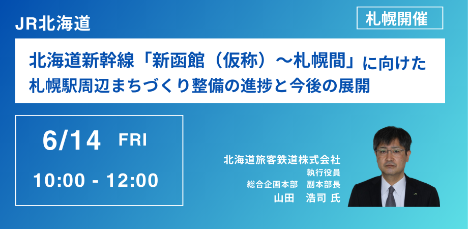 【JPIセミナー】JR北海道「北海道新幹線「新函館(仮称)~札幌間」に向けた札幌駅周辺まちづくり整備の進捗と今後の展開」6月14日(金)<札幌開催>