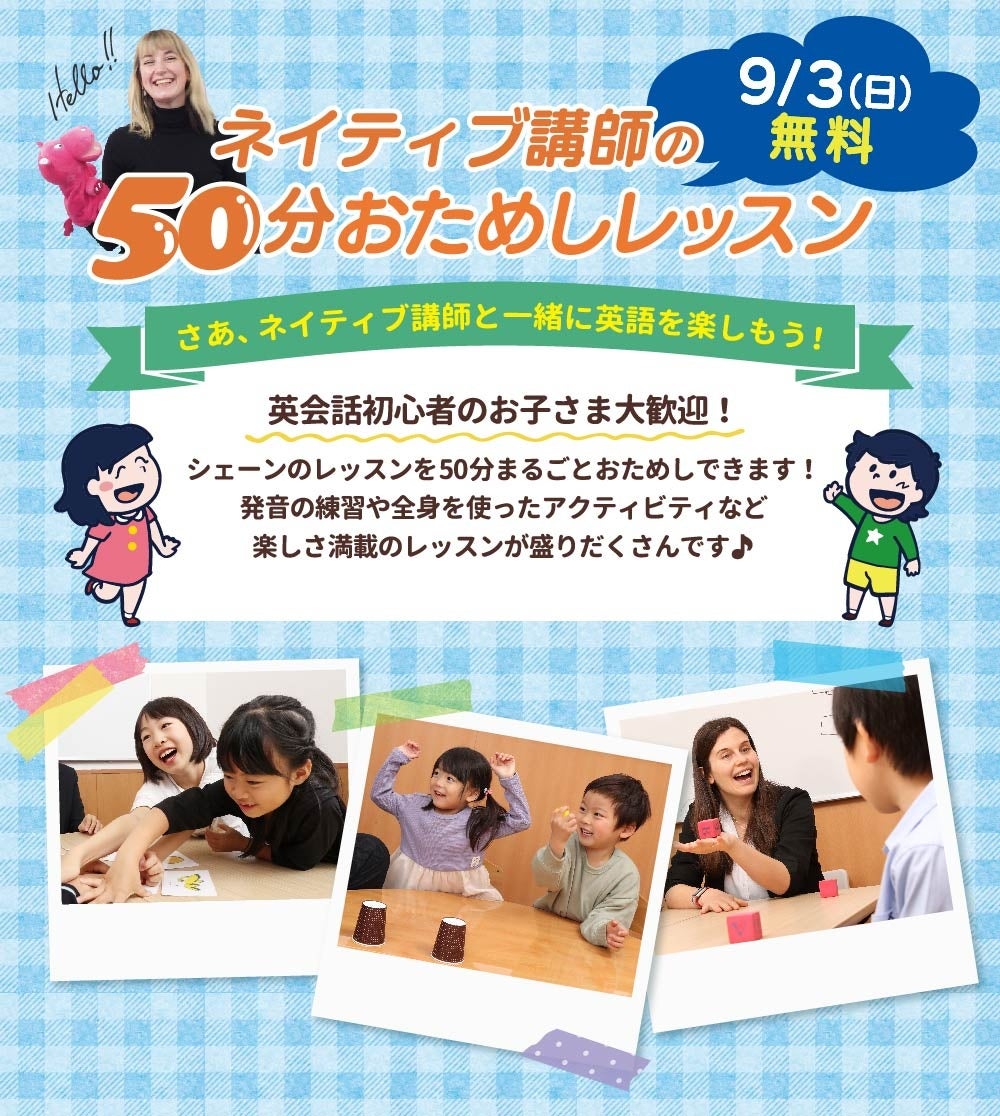 【シェーン英会話】9/3開催!年少~小学生向け無料おためしレッスン申込受付中