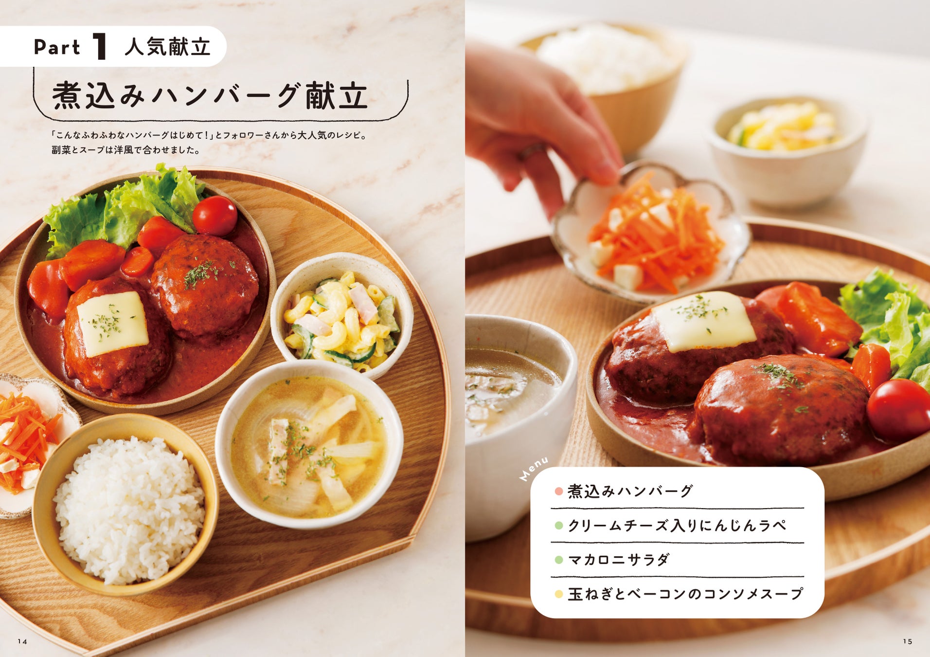 著者はSNS総フォロワー数200万人超えの大人気料理クリエイター。本書が初の著書となります。身近な食材とシンプルな調味料で、感動するほどおいしくて褒められる一汁三菜献立をレパートリー豊かに紹介。おぼんを使うことでカフェ風になって食卓が楽しくなります。料理は作りたいけれど自信が持てない人、献立を考えることがめんどうくさい人、そんな人々に寄り添う内容です。