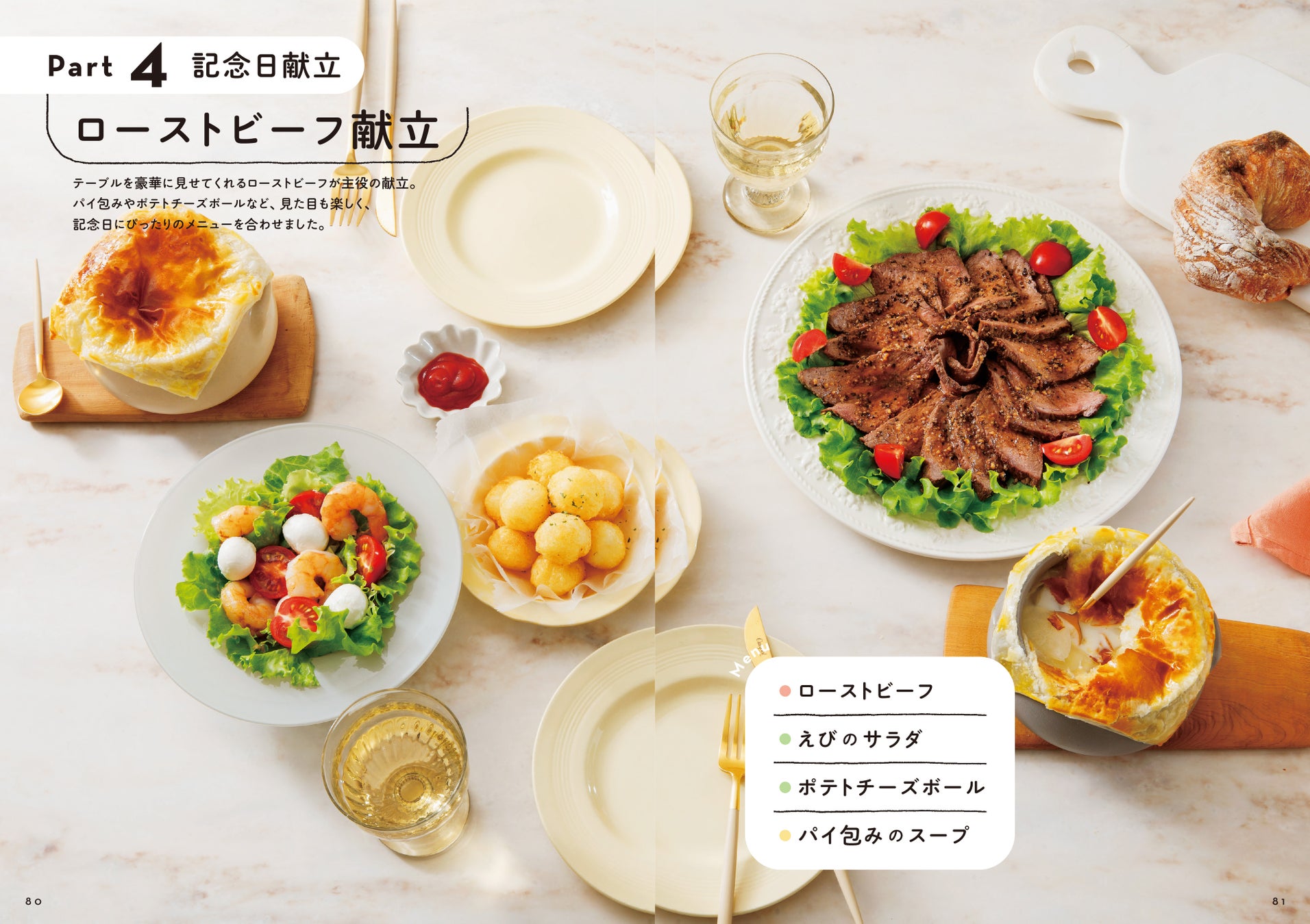 献立だけでなく、忙しい日や疲れている日でもがっつり食べて満腹になれる丼もの、大切な人との特別な日にふるまいたい本格風フルコース、そして休日のランチにぴったりの単品料理も幅広く紹介。手軽にできる丼ものは疲れた日の強い味方で、ボリュームたっぷりなのに手間がかからないレシピです。また、本格風フルコースは見栄えも華やかで、特別な日にふるまえば喜ばれること間違いなし!気分を盛り上げる休日ランチのアイデアも充実しています。