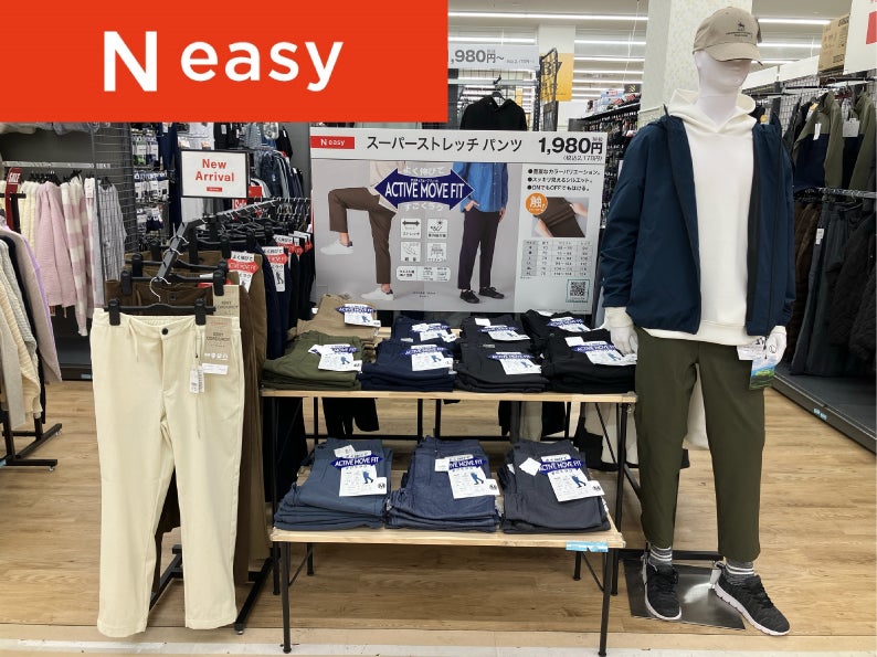 N easyは「気軽に毎日着られるお手頃価格で、お手入れも簡単、快適な着心地のリラックスウェア」をコンセプトに、ニトリとの共同開発によって誕生した島忠オリジナルのリラックスウェアブランドです。現在、島忠・ホームズの36店舗にて取扱いをしており、2025年3月末日までに39店舗へ拡大予定です。ニトリグループの⼀員として、⾐類の分野においてもお客様の⽴場に⽴ち、より多くのお客様に豊かな暮らしをご提供してまいります。