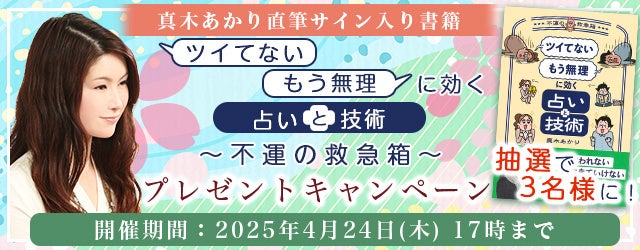 株式会社レンサ(本社:東京都渋谷区、代表取締役:武井哲也)は、2025年3月28日(金)より、運営する公式占いサイト「真木あかりの誕生日占い」にて『真木あかり直筆サイン入り書籍プレゼントキャンペーン』の提供を開始致しました。