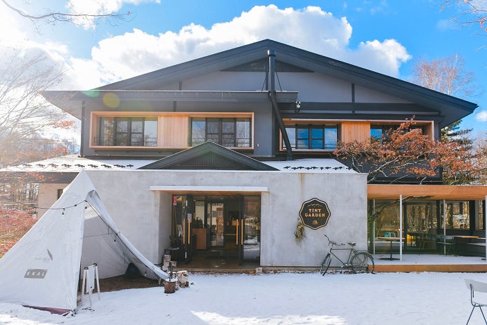 新宿から車で、電車で2時間半。2019年9月、八ヶ岳の麓、蓼科湖畔に佇む「TINY GARDEN 蓼科」はオープンしました。標高1,250m、澄みきった空気と白樺の木々に囲まれた小さな庭には、キャンプ・ロッジ・キャビンの3つのスタイルの宿泊施設、多様な過ごし方を提案するワークステーション施設とともにスタートしたアウトドアウェアブランド「EKAL」のショップ、地元食材を活かしたメニューが並ぶカフェが併設され、日常と非日常が交差する心地良い時間が流れています。