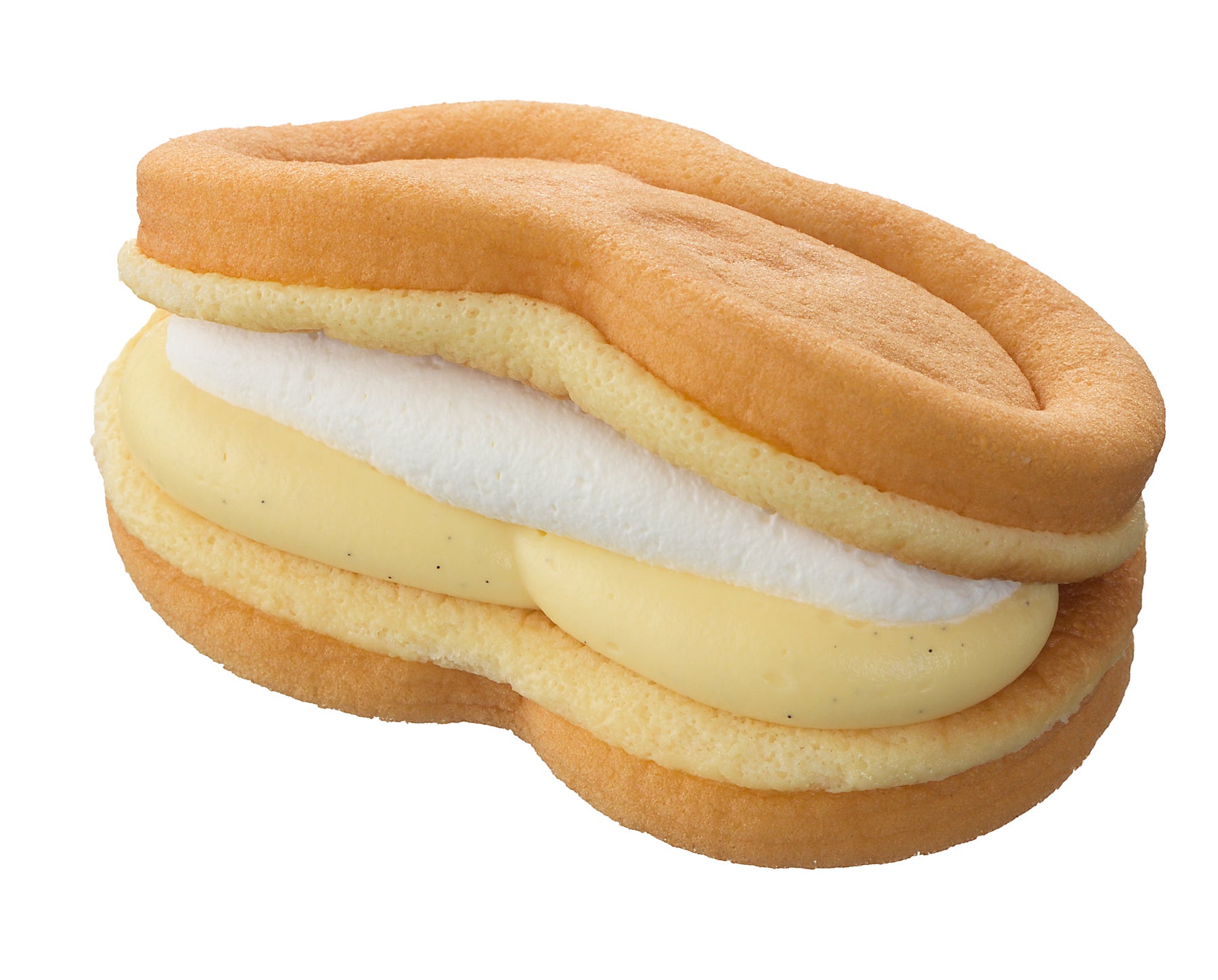当社から発売する「スフレワッフル(つぶあん&ホイップ)」は、つぶあんとホイップクリームという王道な組み合わせを、“スフレワッフル生地”でサンドした、ふわっふわの“洋風どら焼き”のような進化系あんこスイーツです。ふんわりとした“スフレ感”と“ワッフル”のような香ばしさを合わせもつスフレワッフル生地と、ふっくらとしたつぶあん、練乳をブレンドしたホイップクリームが三位一体となり、やさしく甘いハーモニーを奏でます。