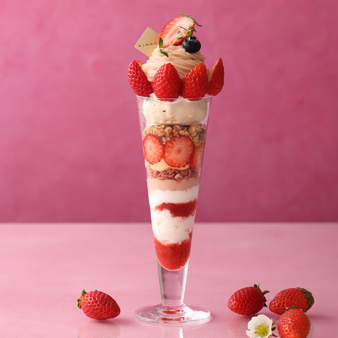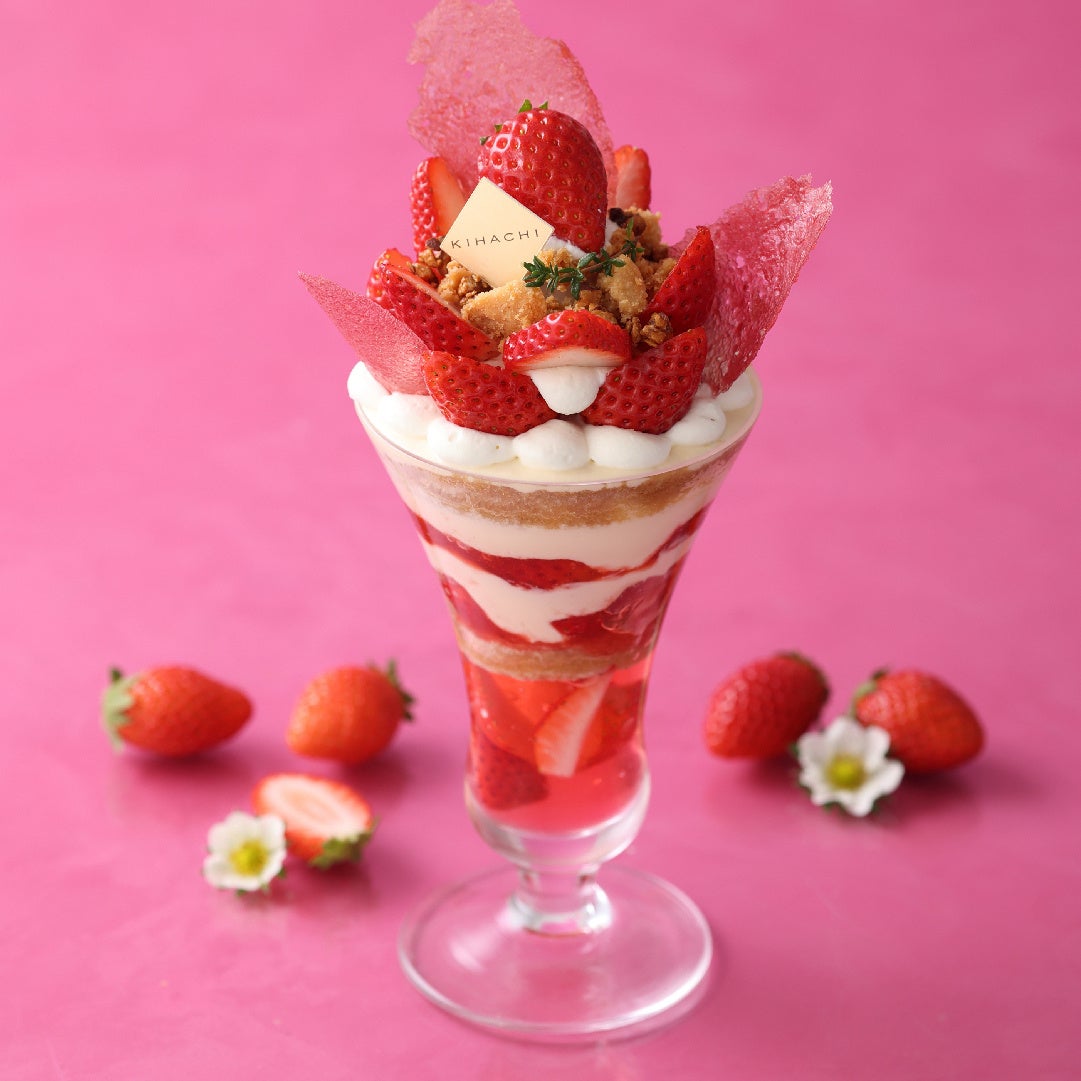 【キハチ カフェ】たっぷりの国産苺×濃厚なティラミス仕立ての新作パフェなどを楽しむ「春のストロベリーフェア」を開催