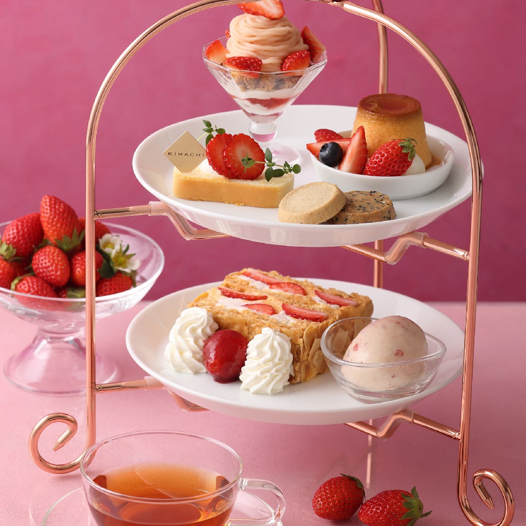 ■パイやクレープ、キハチ自慢の苺スイーツが揃ったアフタヌーンティーセットも