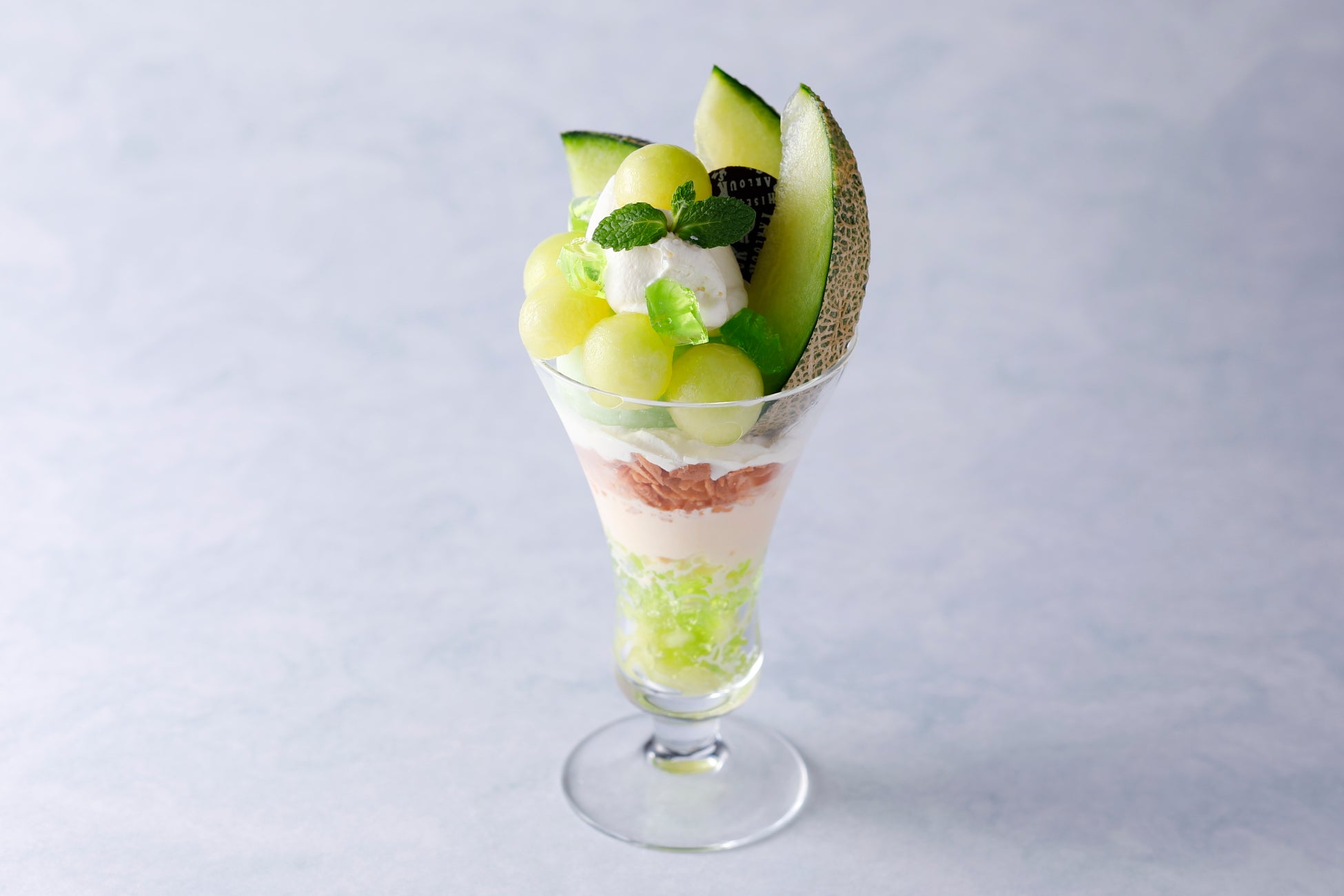 ブランドメロンの生産地静岡県で、大切に育てられた香り豊かな果肉のマスクメロンをデコレーションとして使用し、パフェに仕立てました。