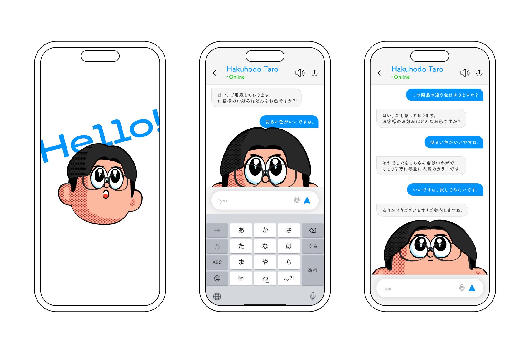 本サービスでは、グローバル展開を意識した博報堂オリジナルのアバターデザインを採用しており、個性的で多様なアバターを再現することができます(ブランドの世界観やニーズに合わせて、アバターデザインをカスタマイズすることも可能です)。さらに、アバターの個性を引き出し、アバターとの対話が楽しくなるようなUI/UXデザインにも注力しました。基本機能としては、テキストメッセージでのコミュニケーションに対応しており、応用機能として、音声でのコミュニケーションにも対応可能です。