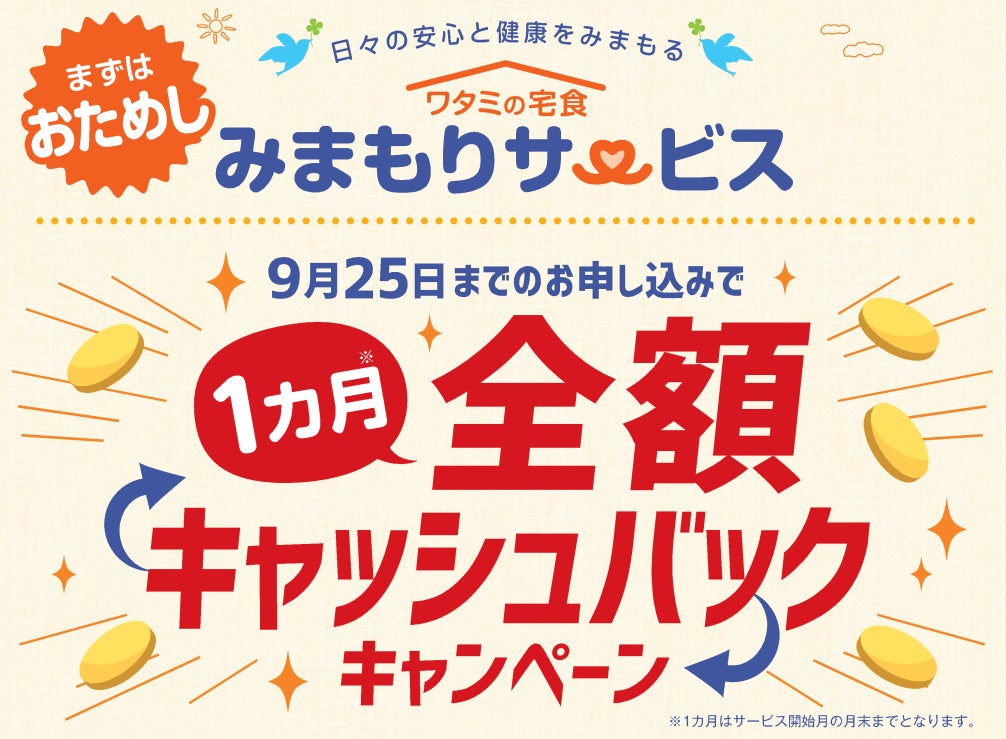 「ワタミの宅食 みまもりサービス」『初月全額キャッシュバックキャンペーン』を開催!