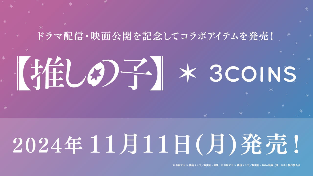 あなたの“ちょっと幸せ”をお手伝いする雑貨店「3COINS」(スリーコインズ)は、ドラマ&映画【推しの子】とのコラボレーショングッズを11月11日(月)より販売開始します。