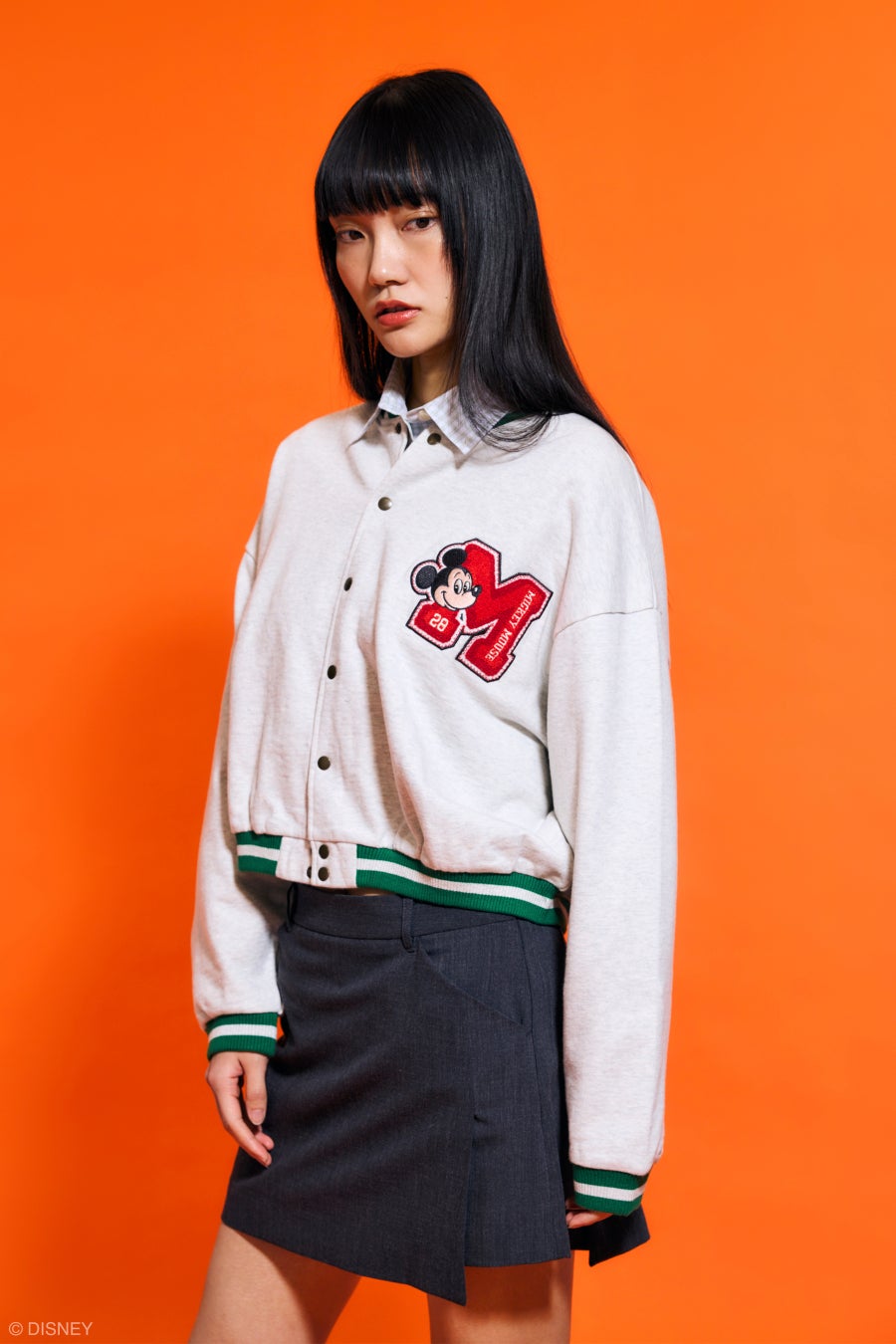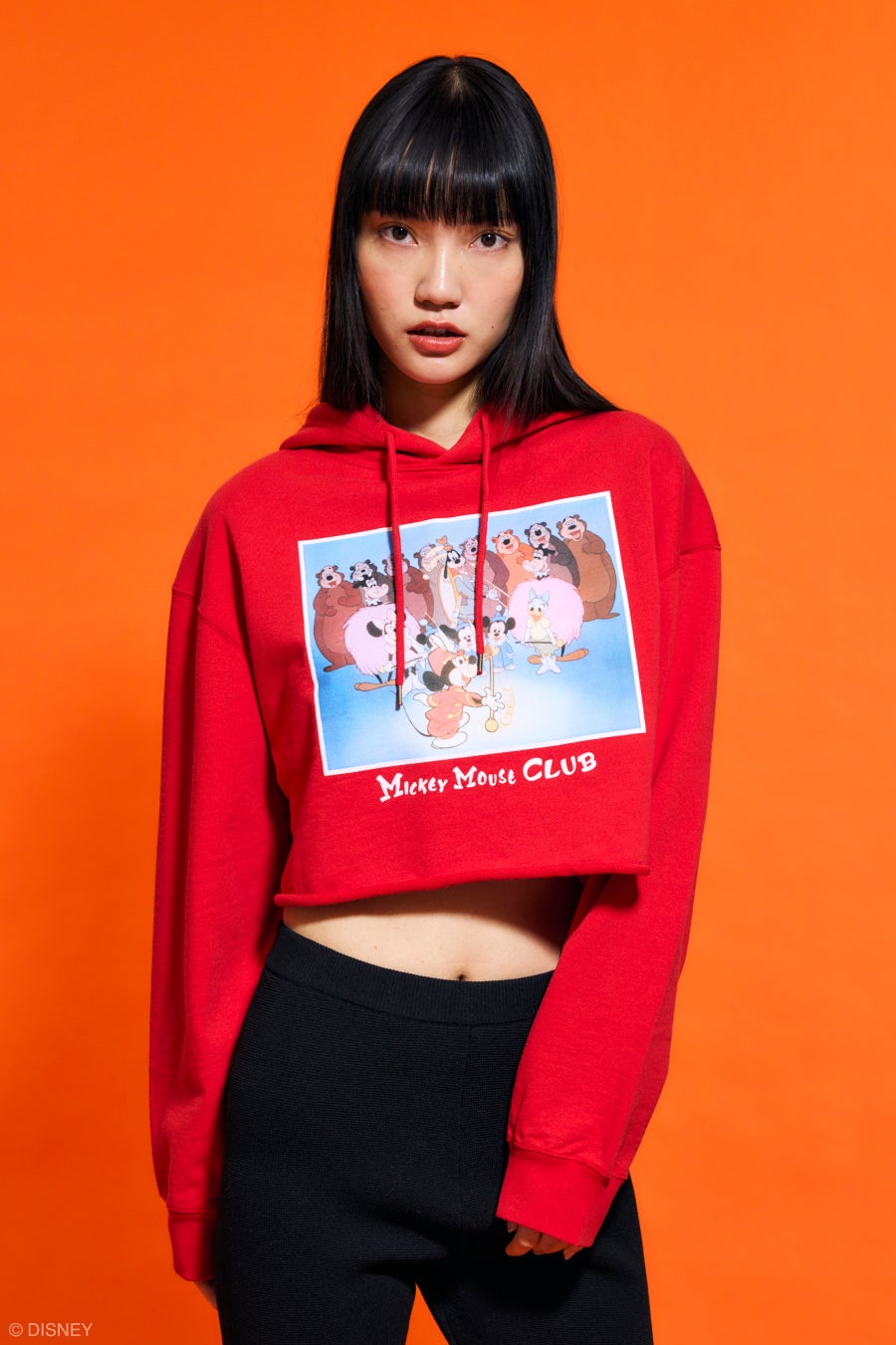 ミッキー&フレンズではキャンディーの様な透明感のあるカラーボタンを、さりげなくミッキーのお顔にしたポップなキャンディースリーブのニットカーディガンや、1937年に公開されたディズニーアニメーション短編映画『ミッキーの大時計』(原題:Clock Cleaners)の歯車から飛ばされ3人が揃ったシーンを表現したオーバーサイズクルースウェットや、1955年に公開された『The Mickey Mouse Club』より冒頭の印象的なシーンのフーディはあの名曲が脳内再生されてループし口ずさんでテンションが上がりそうな仕上がりに。