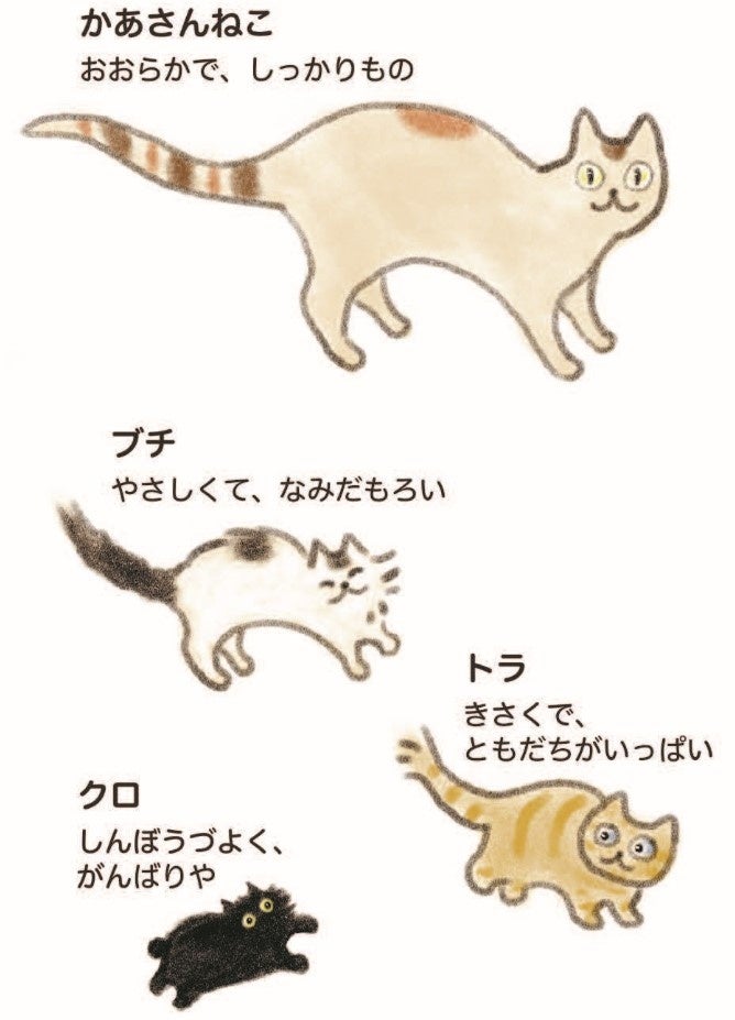 自分がみんなと違うしっぽをもっていることを受け入れ、あれこれ奮闘するクロの健気な姿を、ミヤザーナツさんが柔らかなタッチで描きます。さあ、末っ子クロのお話が始まりますよー。