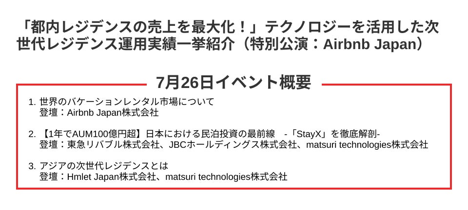 【7月26日イベント開催】「都内レジデンスの売上を最大化!」テクノロジーを活用した次世代レジデンス運用実績一挙紹介(特別講演:Airbnb Japan)