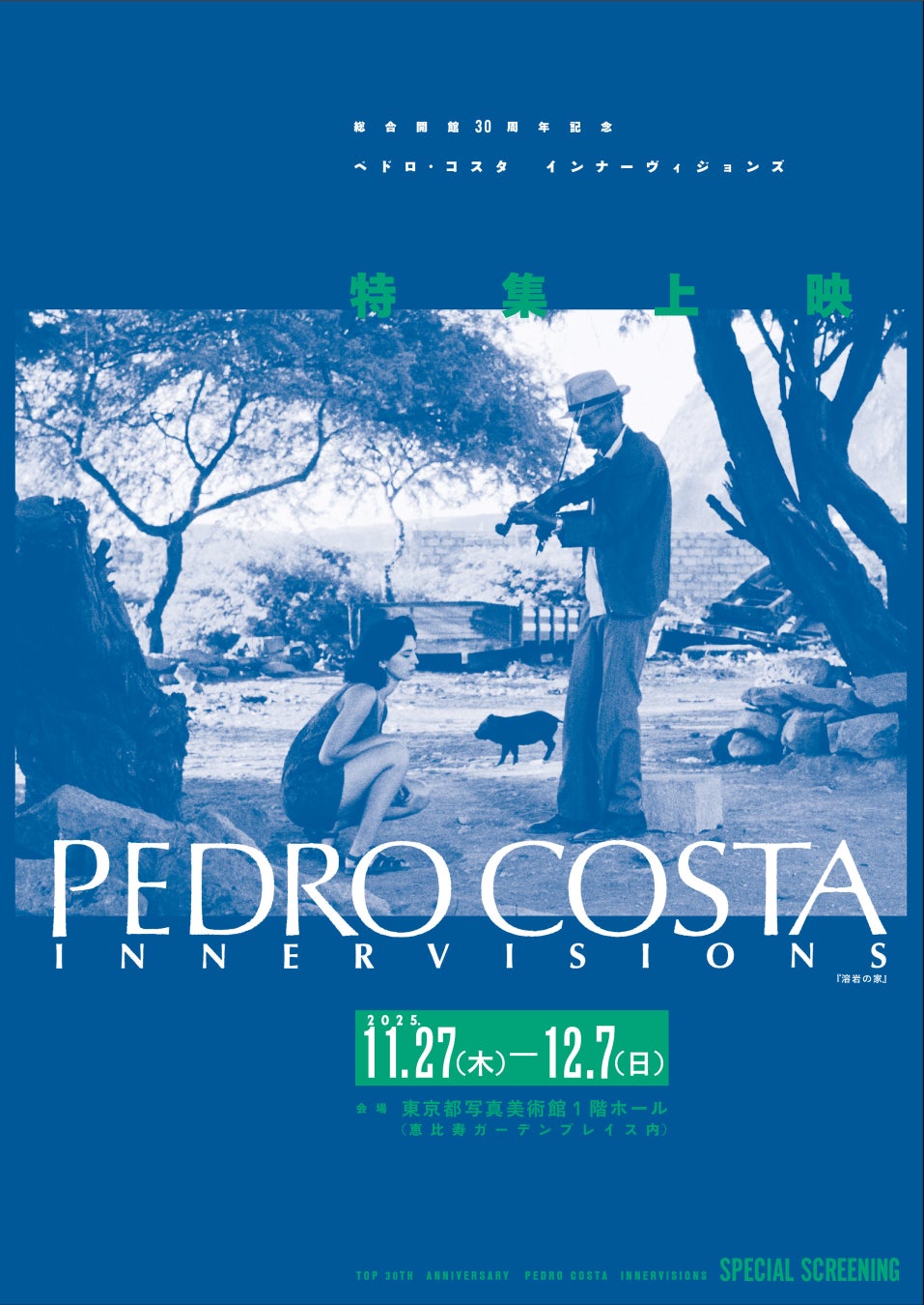 東京都写真美術館では、総合開館30周年を記念して、ポルトガルを代表する映画監督ペドロ・コスタ(1958–)による展覧会「ペドロ・コスタ インナーヴィジョンズ」を開催しております。日本最大規模で、東京では初めてとなる美術館での本個展にあわせて、美術館1 階ホールにて、11月27日(木)から12月7日(日)までの期間、コスタ監督の初期作品から最新作までの主要作品を含む11プログラムを特別上映いたします。期間中は、コスタ監督(オンライン出演)をはじめ、多彩なゲストによるアフタートークも予定しております。