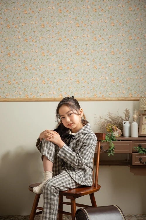 レトロな空間に現代的なセットアップスーツを合わせて個性的なビジュアルに。セットアップスーツは男女問わず着用することができ、かっちりしすぎないナチュラルな入学記念写真を残したい方にぴったりです。