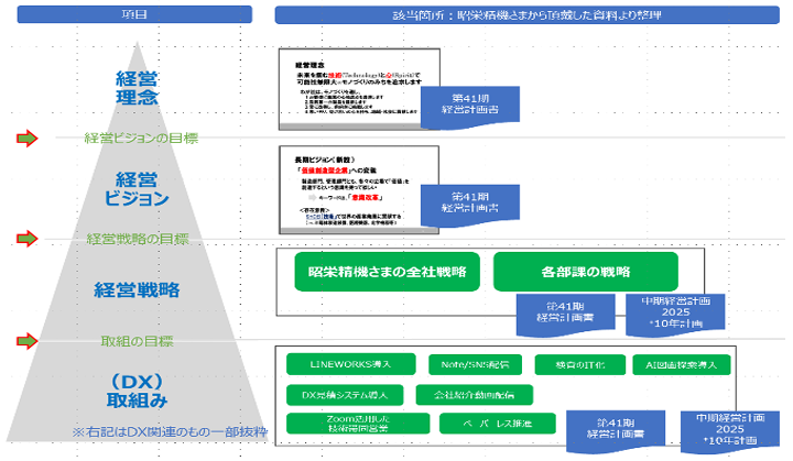 <既存事業計画の整理と従業員に伝わりやすい言語化> ※経営方針で使われている言語から整理し、体系化