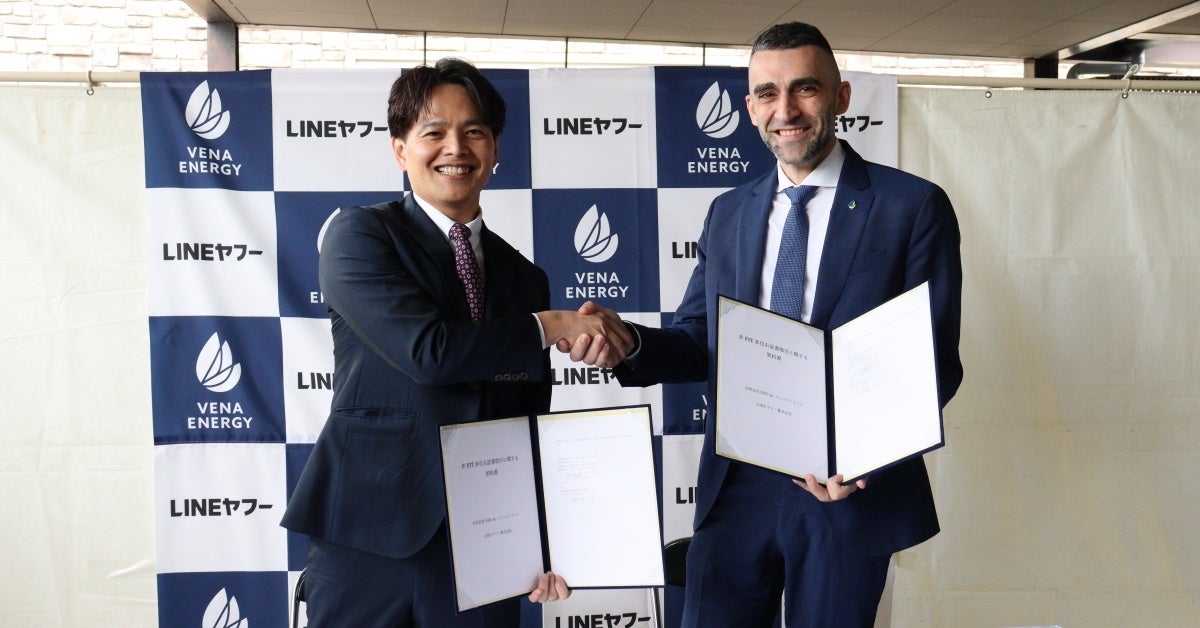 LINEヤフー株式会社(以下、LINEヤフー)は、岡山県真庭市に建設される「真庭太陽光発電所(2026年竣工予定)」において、再生可能エネルギー発電事業者であるヴィーナ・エナジーとバーチャルPPA(Virtual Power Purchase Agreement:電力需要家と発電事業者が、発電量に応じた環境価値のみを直接取引する電力購入契約)を締結しました。バーチャルPPA用の単体の太陽光発電所において国内最大規模※1となる「真庭太陽光発電所」から年間8,500万kWh分の非FIT非化石証書による環境価値(CO2削減効果)を20年間購入します。LINEヤフーがPPAを締結するのは今回が初となります。