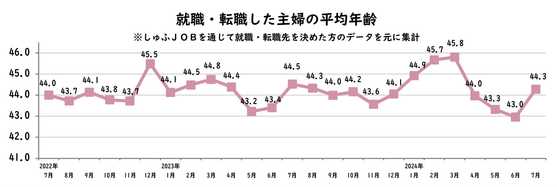 【転職しゅふの平均年齢調査 2024年7月】44.3歳(前年同月比-0.2歳)