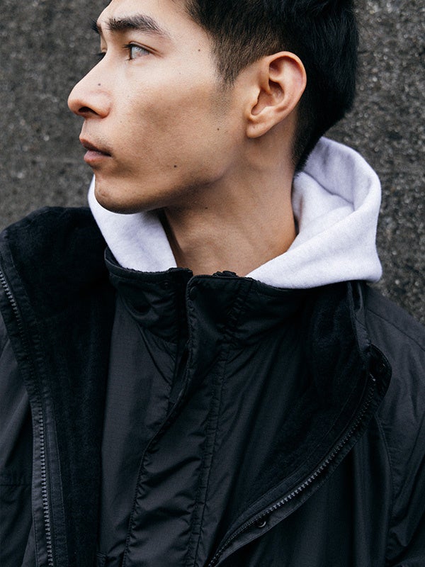 表地は撥水加工を施したリサイクルポリエステル100%を採用し、裏地には同じくリサイクルポリエステル100%の機能性起毛フリースOCTA®︎を採用しています。