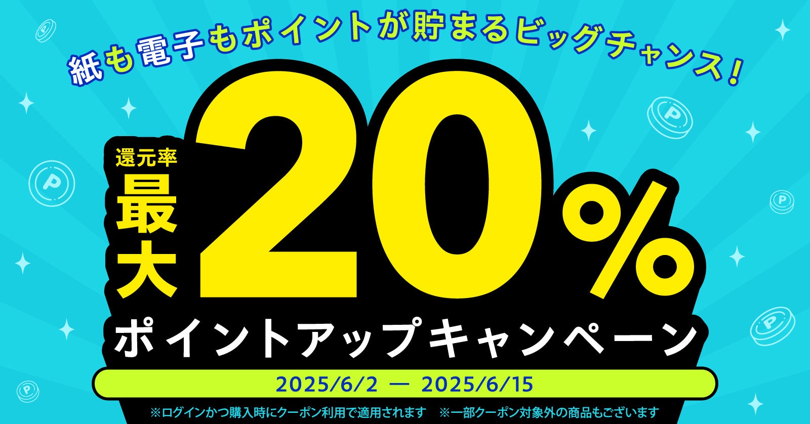 内容: 期間中、漫画全巻ドットコムにてお買い物をする際に対象クーポンをご利用いただくと、通常のポイント還元率に加えて+5%のポイントが還元されます。