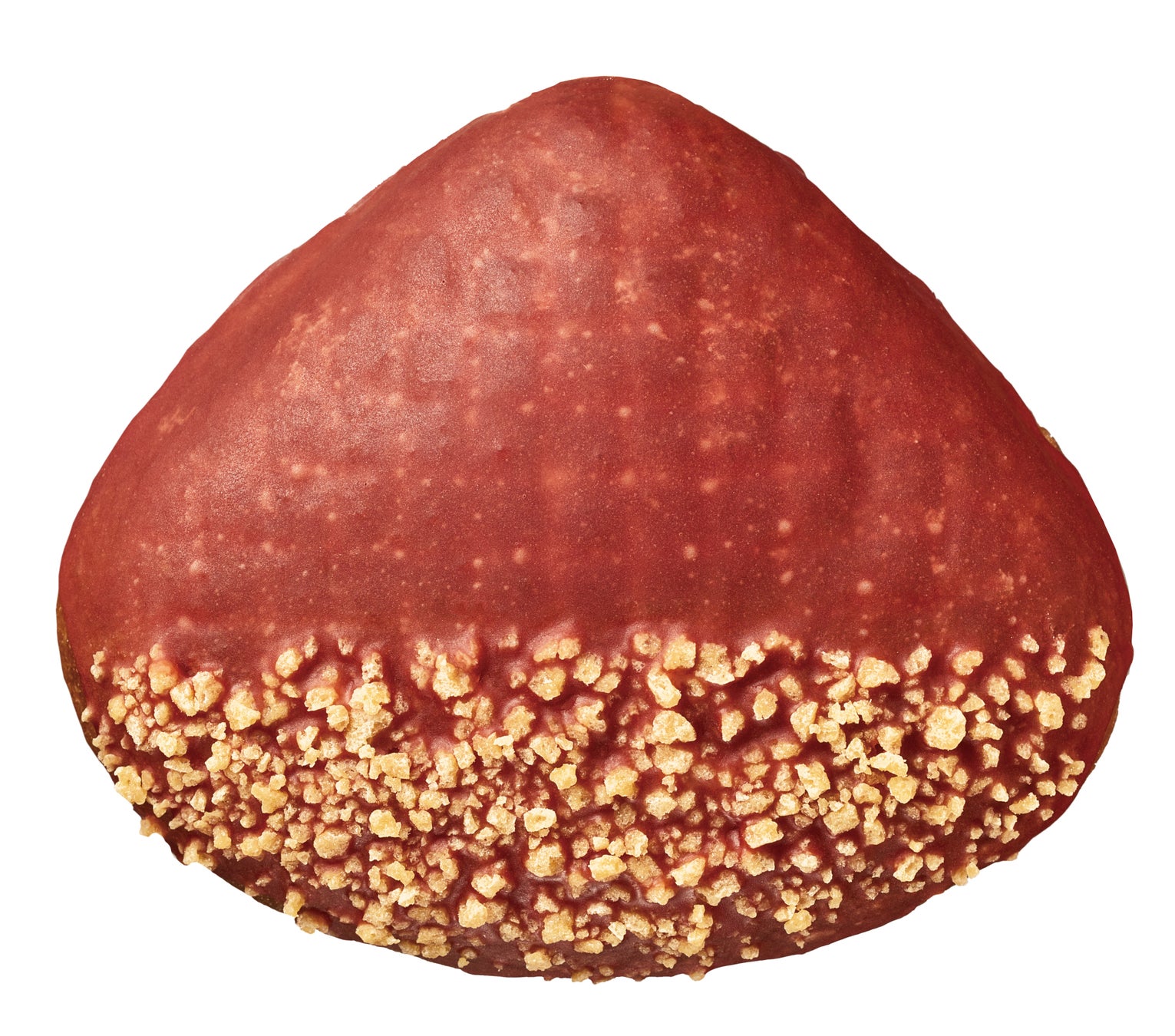 しっとりしたくちどけのよい栗のかたちをしたドーナツ生地に、栗風味のフレークチョコをトッピングし、熊本県産和栗入りあんとホイップクリームをサンドしました。まるで栗のような見た目と栗の味が楽しめます。