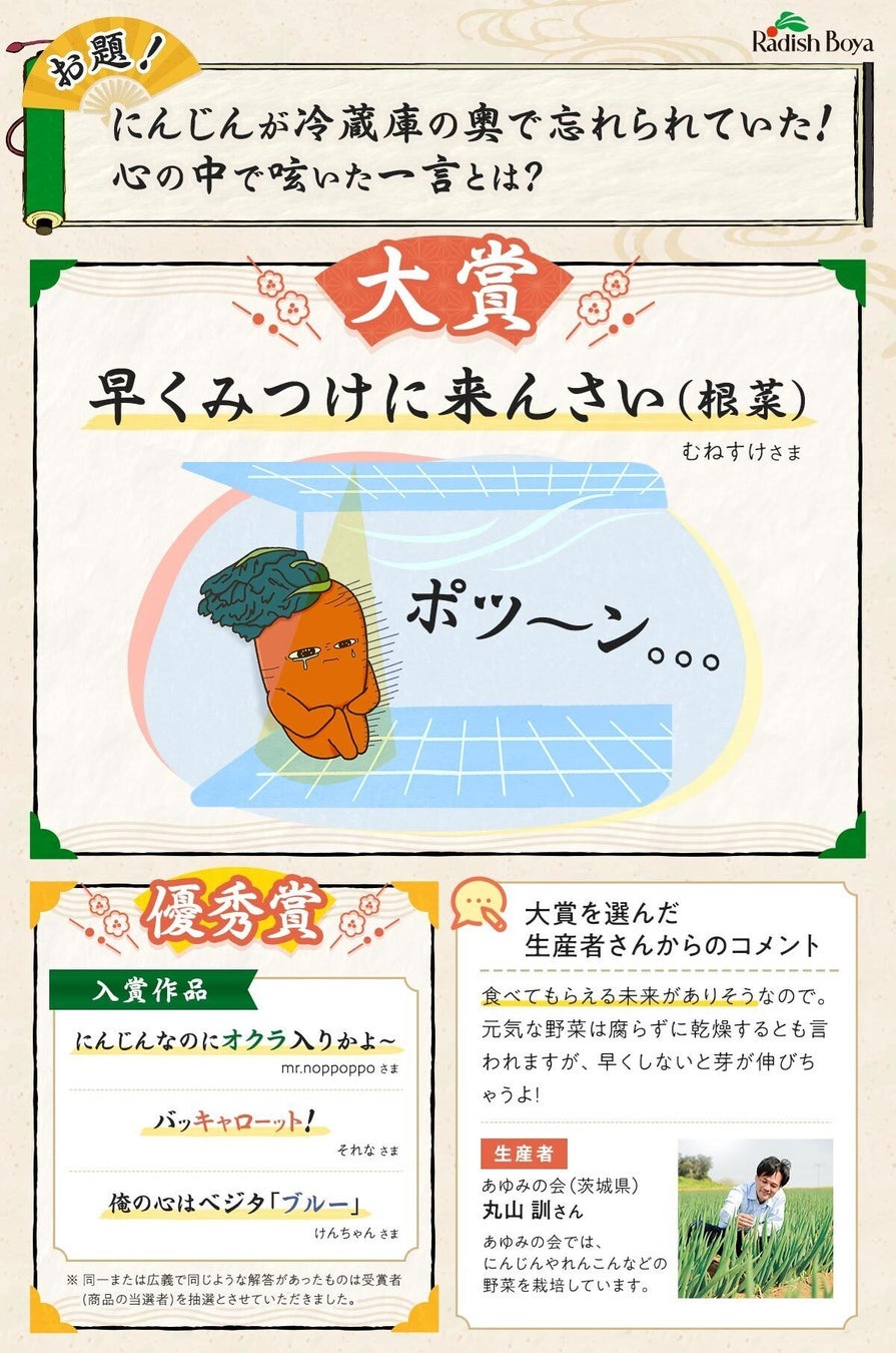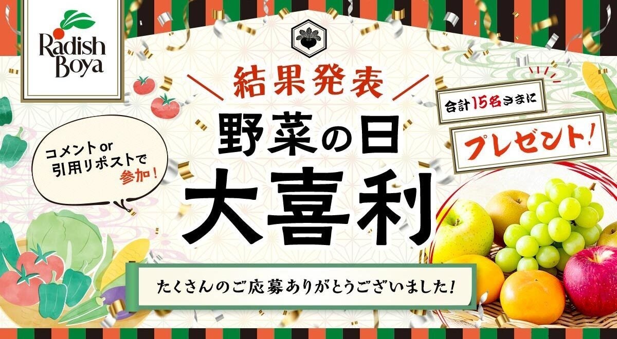 野菜販売歴36年のらでぃっしゅぼーやが野菜の日に大喜利SNS投稿企画を開催! 応募総数約1,300件の中から生産者らが選ぶユニークな回答を発表!