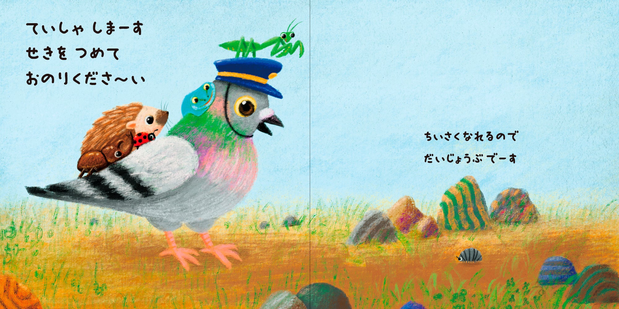 「しゅっぽっぽ」のリズムが心地よい絵本『さんぽっぽ』(たなかしん作)。はとの車掌さんと、野原の仲間たちが織りなす心温まる物語は、思いやりの気持ちを育みます。