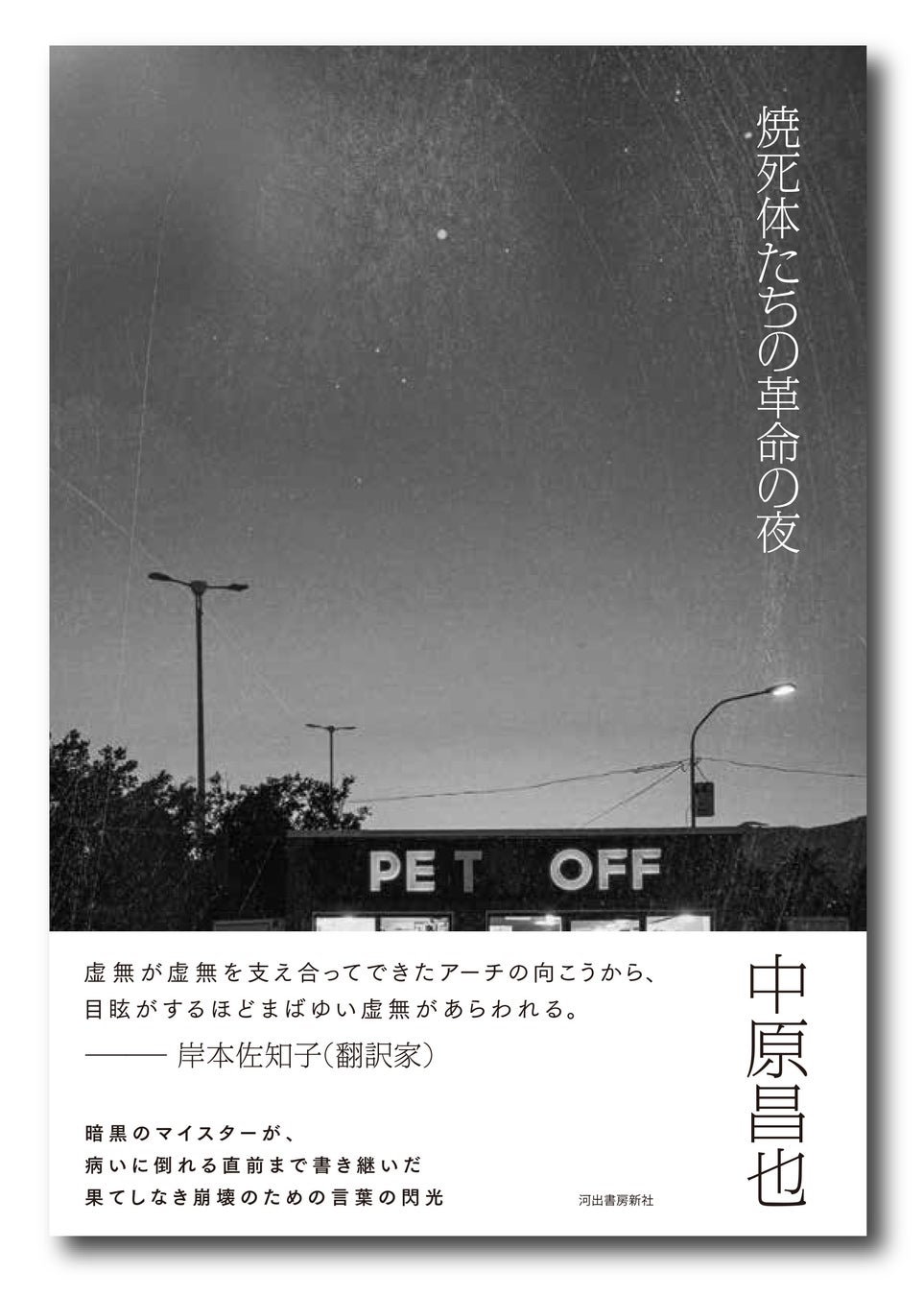 株式会社河出書房新社(東京都新宿区/代表取締役 ⼩野寺優)は、作家、ミュージシャン、映画評論家、アーティストとして幅広く活躍する中原昌也の2023年1月病床に伏して以降初となる小説集『焼死体たちの革命の夜』を2025年4月30日に刊行いたします。
