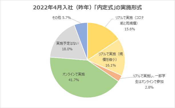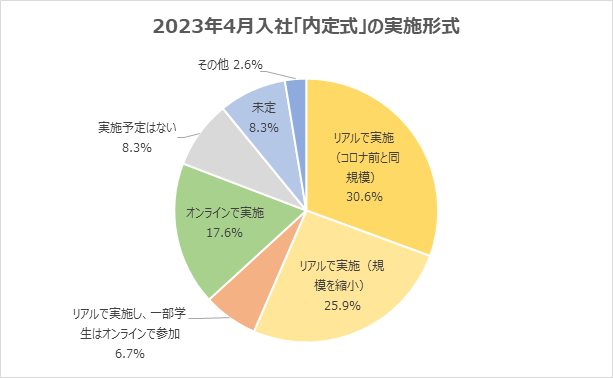 (1) 「内定式」はリアルで実施する企業が6割を超える。昨年の約2倍に