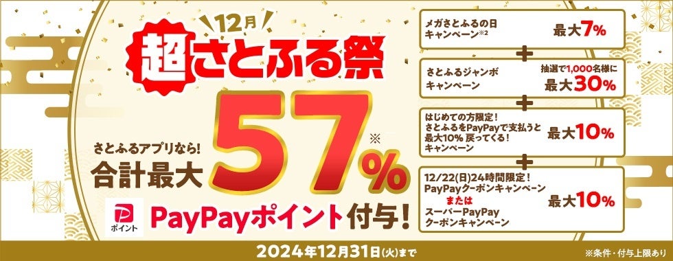 さとふる、12月に最大57%のPayPayポイントがもらえるキャンペーン「超さとふる祭」を開催