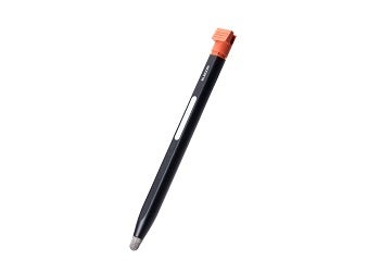 ▲ペントップ部分がオレンジ色なので、ペンが収納されているか簡単に判断可能 ▲D型形状のペン軸で転がりにくい ▲タッチペンだから、画面を汚さずに操作可能
