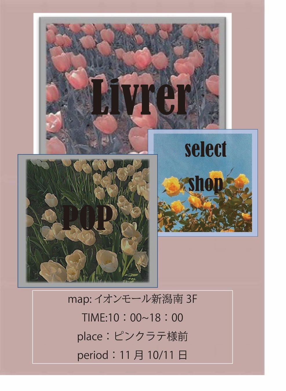 NSGグループ 学校法人 国際総合学園 国際トータルファッション専門学校(以下「本学」、新潟県新潟市、学校長:土田 一郎)ファッションビジネス科2年生は、イオンモール新潟南3F(ピンクラテ様前)にて11月10日(木)・11日(金)にPOPUPショップを開催します。