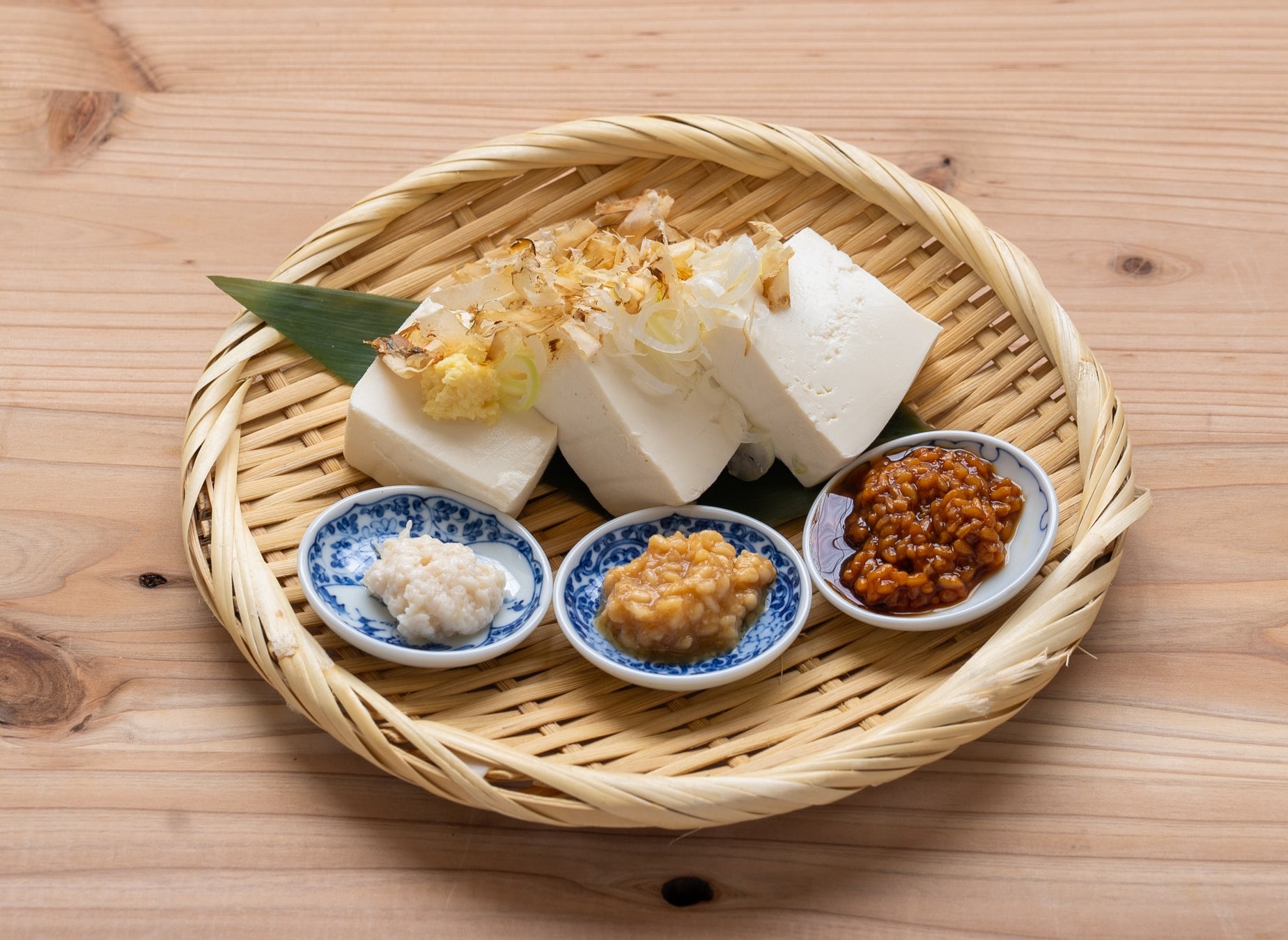 ・自家製糀3種(塩・味噌・醤油)で食べる 湧き水豆腐