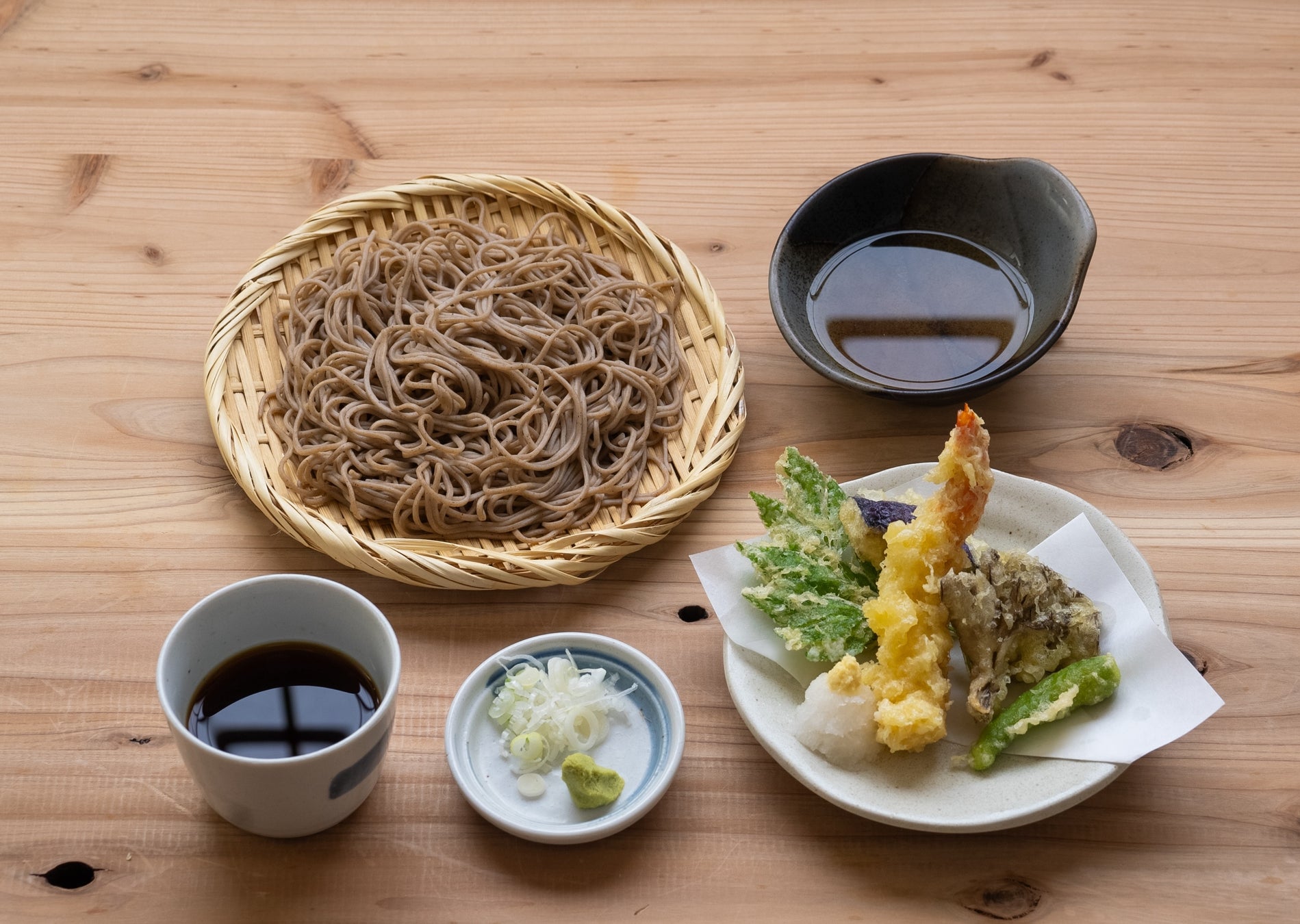 ・竹富島産 陸上養殖車海老の天ざる蕎麦