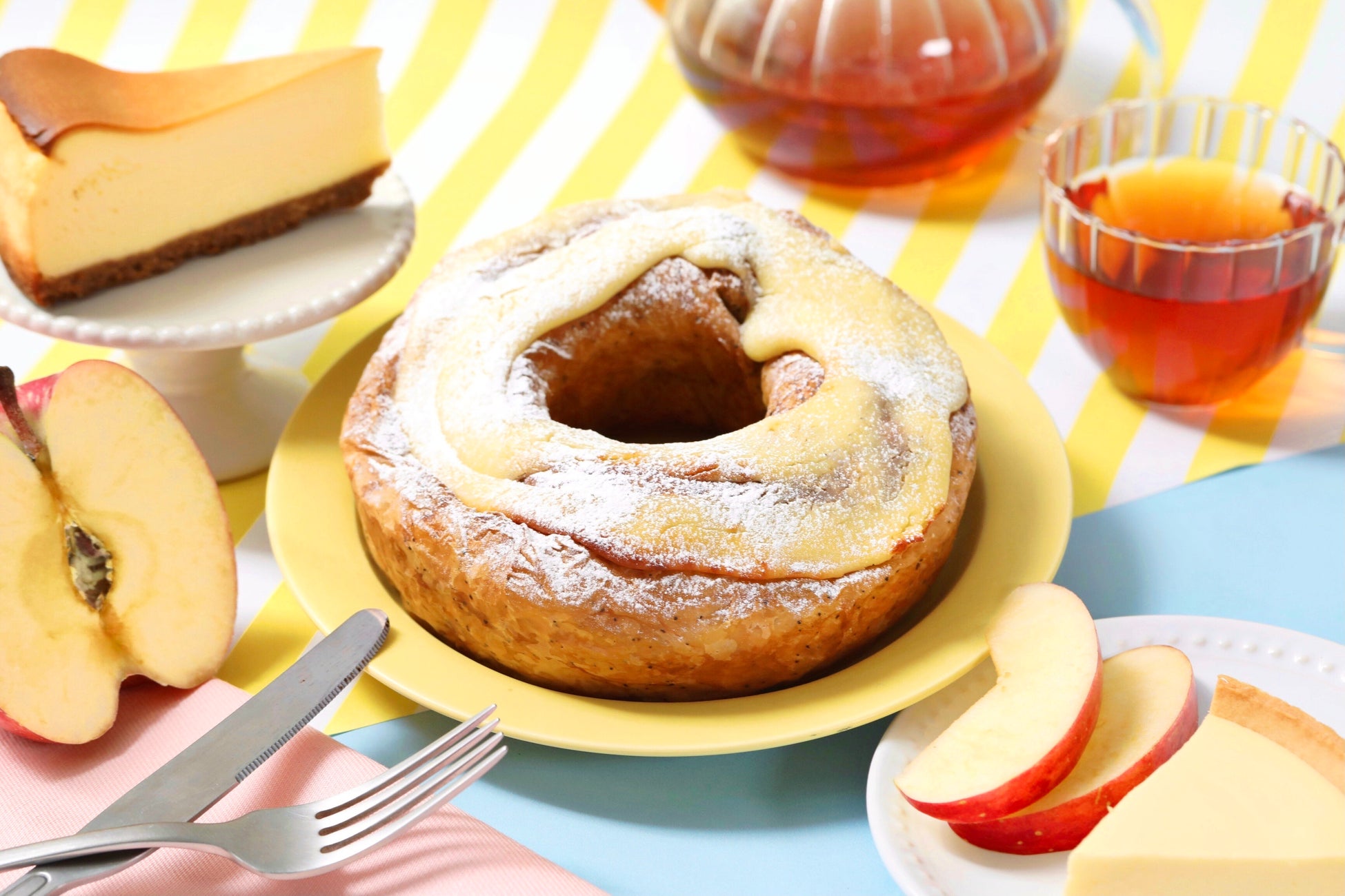 夏に食べたい!爽やかな「アールグレイ」の香り広がる新商品、ごろっとりんごを楽しめる『ねこねこ食パン アールグレイアップルティー』、『アールグレイのWチーズケーキリング』が7/1より期間限定で新発売!
