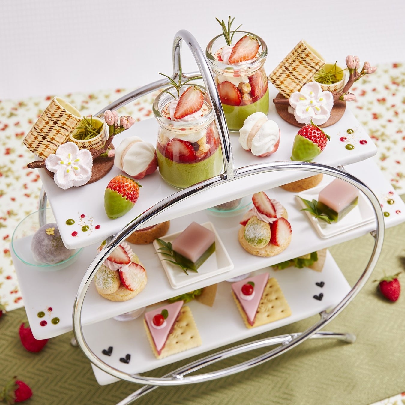 「ストロベリー&チョコレートのチャイニーズアフタヌーンティー」:B1F 中国料理「桂花苑」/「いちごと抹茶のアフタヌーンティー」:1F ロビーラウンジ「フォンテーヌ」