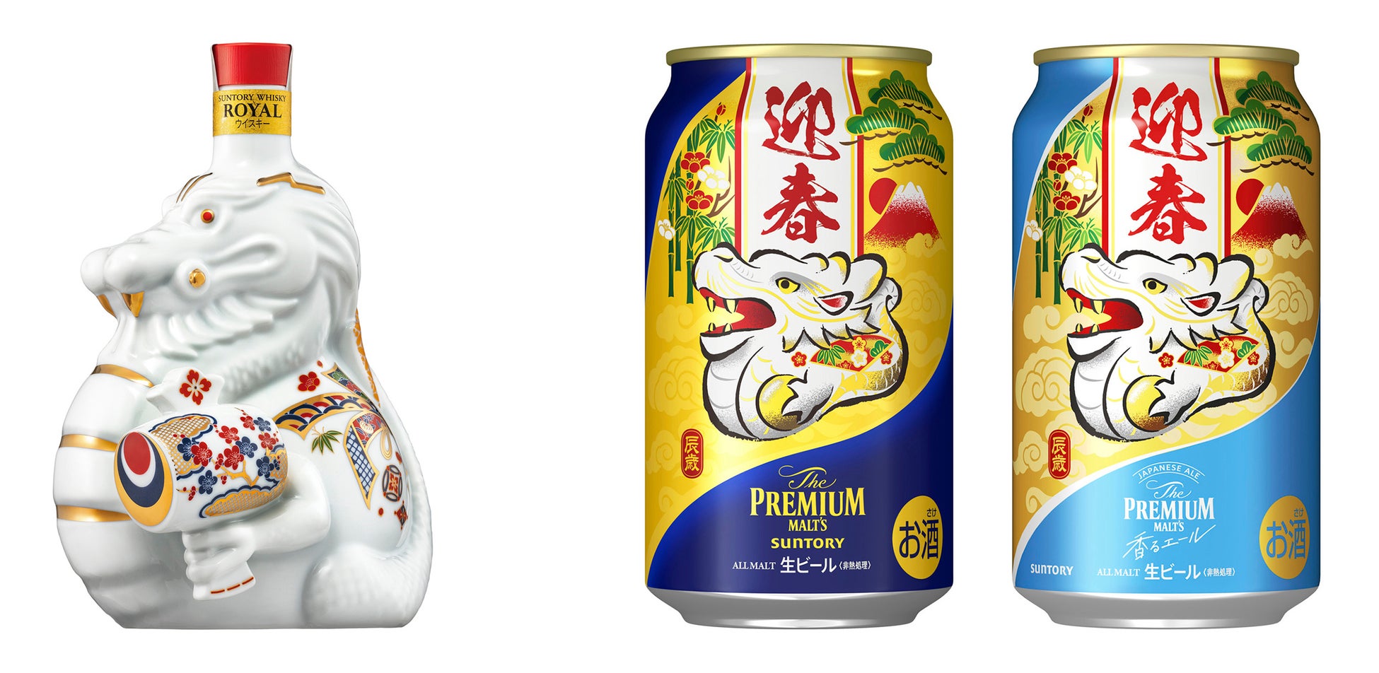 サントリー(株)は、「サントリーウイスキーローヤル〈辰歳〉ボトル」を11月7日(火)から、「ザ・プレミアム・モルツ〈干支デザイン缶(辰歳)〉」「同 〈ジャパニーズエール〉香るエール〈干支デザイン缶(辰歳)〉」を11月28日(火)から全国で数量限定新発売します。