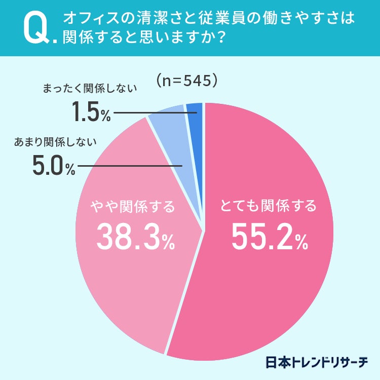 まずは、オフィスの清潔さと従業員の働きやすさは関係すると思うか聞いてみました。