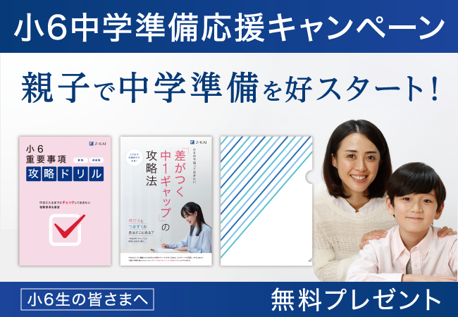 【Z会の通信教育】小6生対象:中学準備応援キャンペーン実施中。中学入学前に役立つドリルや情報誌を無料でプレゼント!
