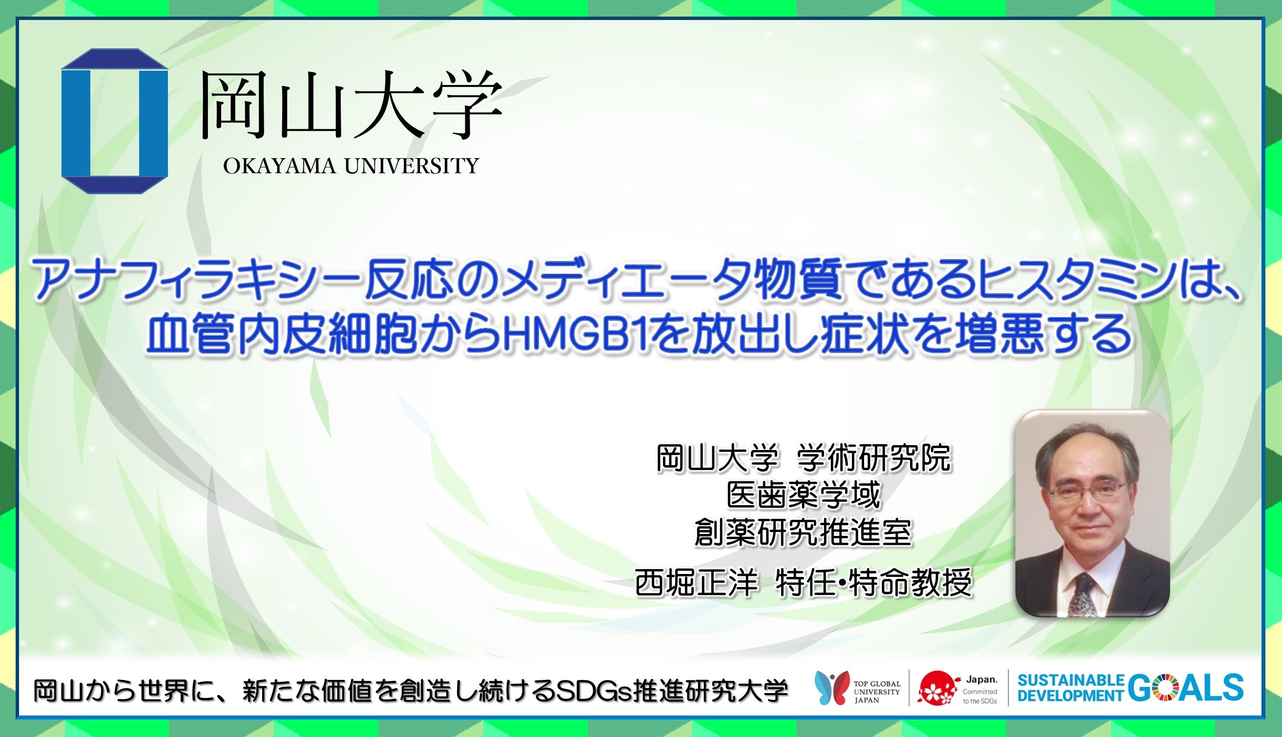 【岡山大学】アナフィラキシー反応のメディエータ物質であるヒスタミンは、血管内皮細胞からHMGB1を放出し症状を増悪する