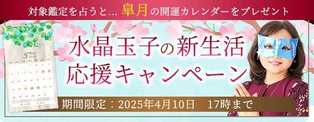 2025年上半期の運勢|水晶玉子が占う、あなたの運勢と開運。公式占いサイト「エレメンタル占星術」にて、皐月の開運カレンダー待ち受け画像がもらえる『新生活応援キャンペーン』を実施中