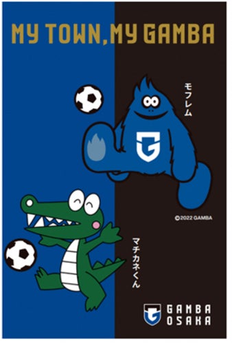 フラッグには、「空港のあるまち」豊中の特色である飛行機とガンバ大阪オフィシャルマスコット「モフレム」がコラボしたご当地モフレムのデザインを採用。さらに、本市の公式キャラクター「マチカネくん」とモフレムが並んでサッカーをしたデザインも制作しました。