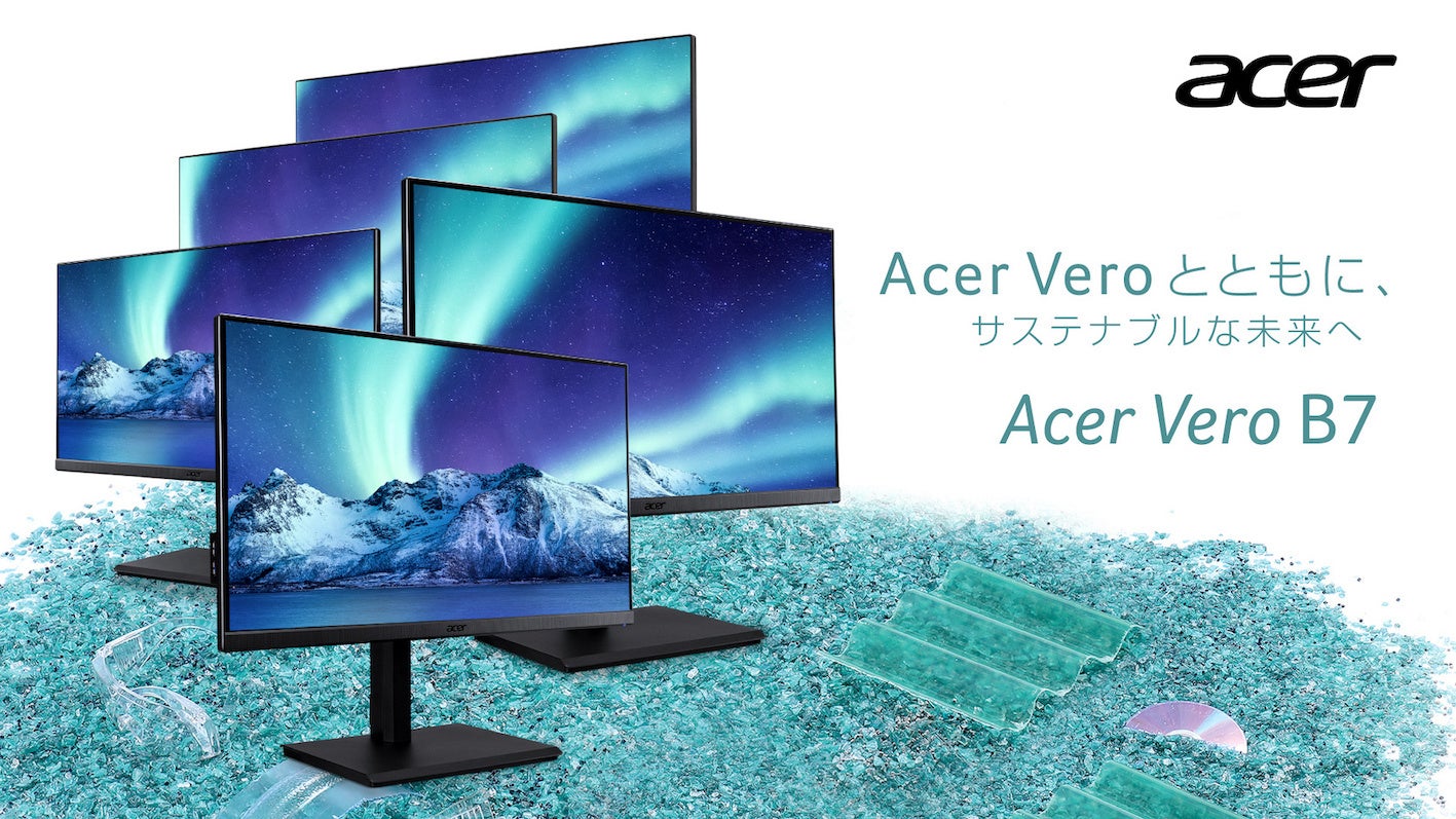 再生プラスチックやリサイクル素材を90%使用したサステナブルなAcer Veroシリーズから広視野角IPSパネル、高速リフレッシュレート100Hzに対応したスタンダードモニターB7シリーズ5製品を発売