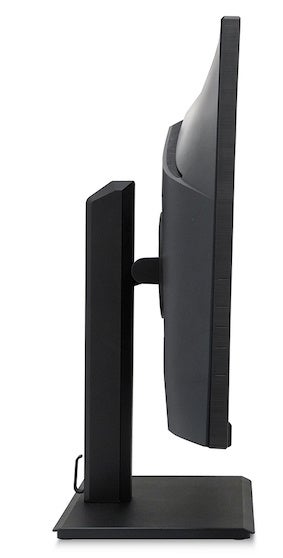 また、ディスプレイをベストポジションにするための最大150mmまで高さ調整、左右45°までスイベル機能、縦表示も可能な時計/反時計回り90°までピボット機能も対応しています。さらにディスプレイを囲むベゼル幅を狭く抑えたフレームレスデザインの採用により、モニターを複数台横に並べて使用するマルチディスプレイ環境にも適しています。また、VESA規格(100×100mm)にも対応し、モニターアームに付けて使用することもできます。ヘッドフォン端子、2W+2Wステレオスピーカーを搭載しています。