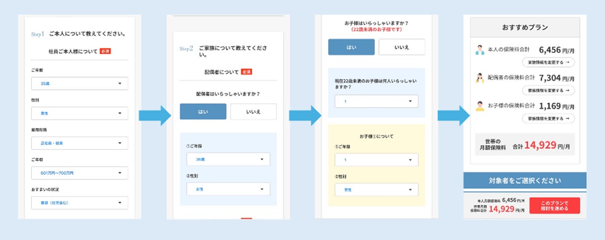 職域ロボアドは、団体保険・団体扱い保険の複数商品をわかりやすく一括で表示することでき、また従業員のご家族も含めた世帯単位での保険設計を考えることが可能であることから、この度の導入に至りました。