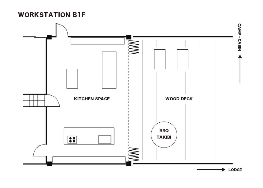 ▼概要|レンタルキッチン&キャンプルーム/ワークステーションB1F