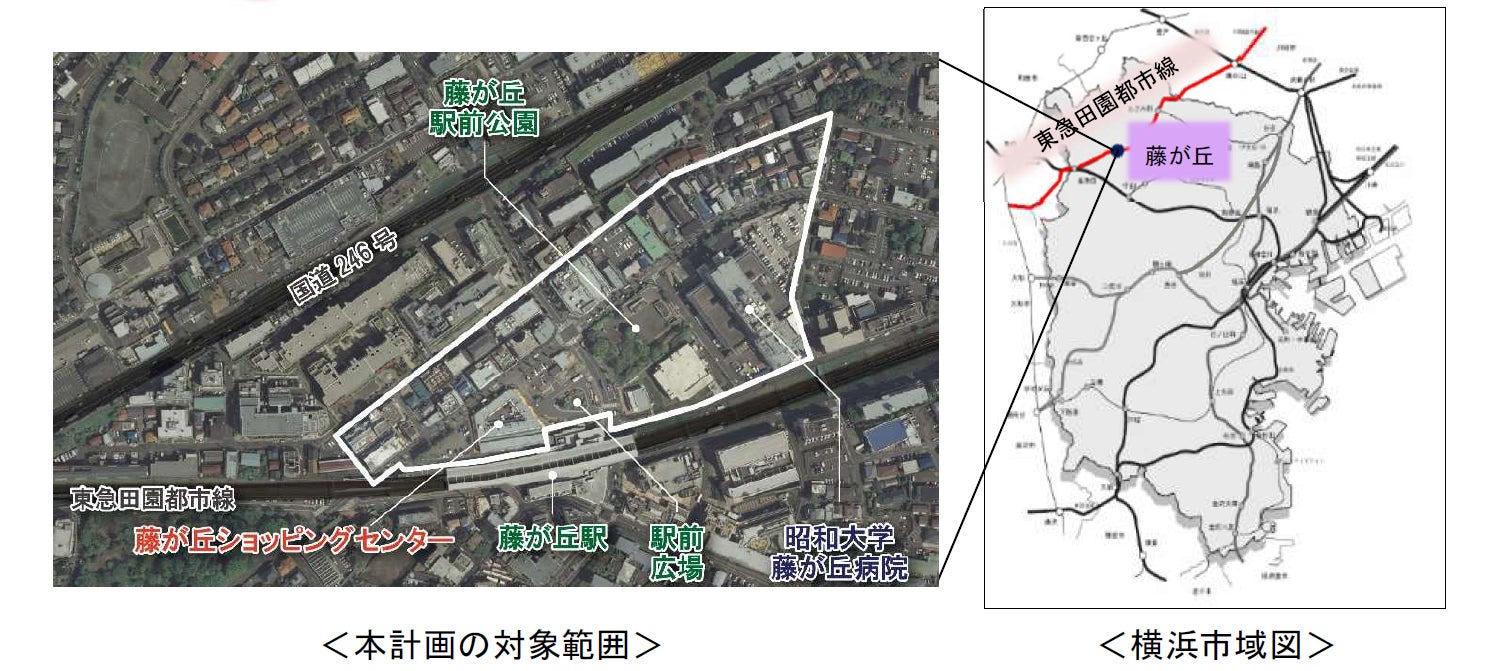 東急田園都市線藤が丘駅周辺は、基盤整備後50年以上が経過し、昭和大学藤が丘病院や藤が丘ショッピングセンターなど駅周辺施設の老朽化や機能更新などへの対応が必要となっています。