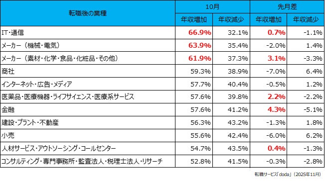 doda転職前後の年収変動レポート【2025年10月版】